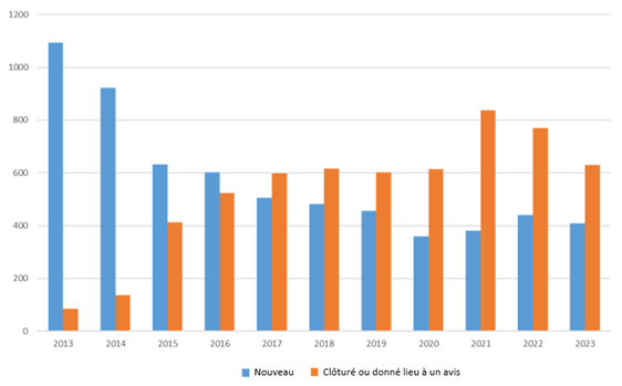 • 1.088 dossiers clôturés avant d’atteindre la phase avis en raison d’une irrecevabilité, un arrêt par le demandeur, un dommage esthétique, etc.