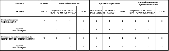 Voici la répartition qui en découle pour les sièges au sein de la Commission Nationale Médico-Mutualiste :