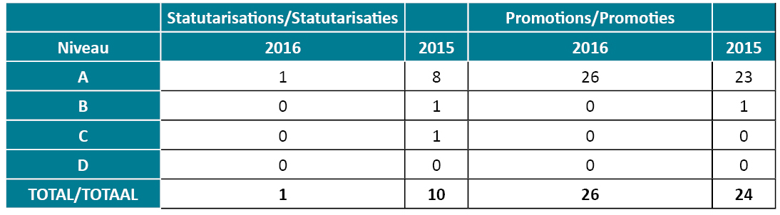 Notre service RH continue de tout mettre en œuvre pour offrir à notre personnel une chance d’être « statutarisé » ou de faire carrière par voie de promotion.