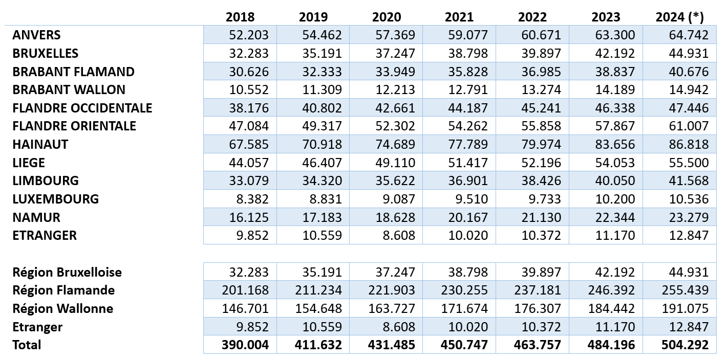 En ce qui concerne la répartition par province, il est à noter que l’augmentation en Région wallonne est principalement due à une forte augmentation à Namur (44,37 %) et dans le Brabant wallon (41,60 %).
