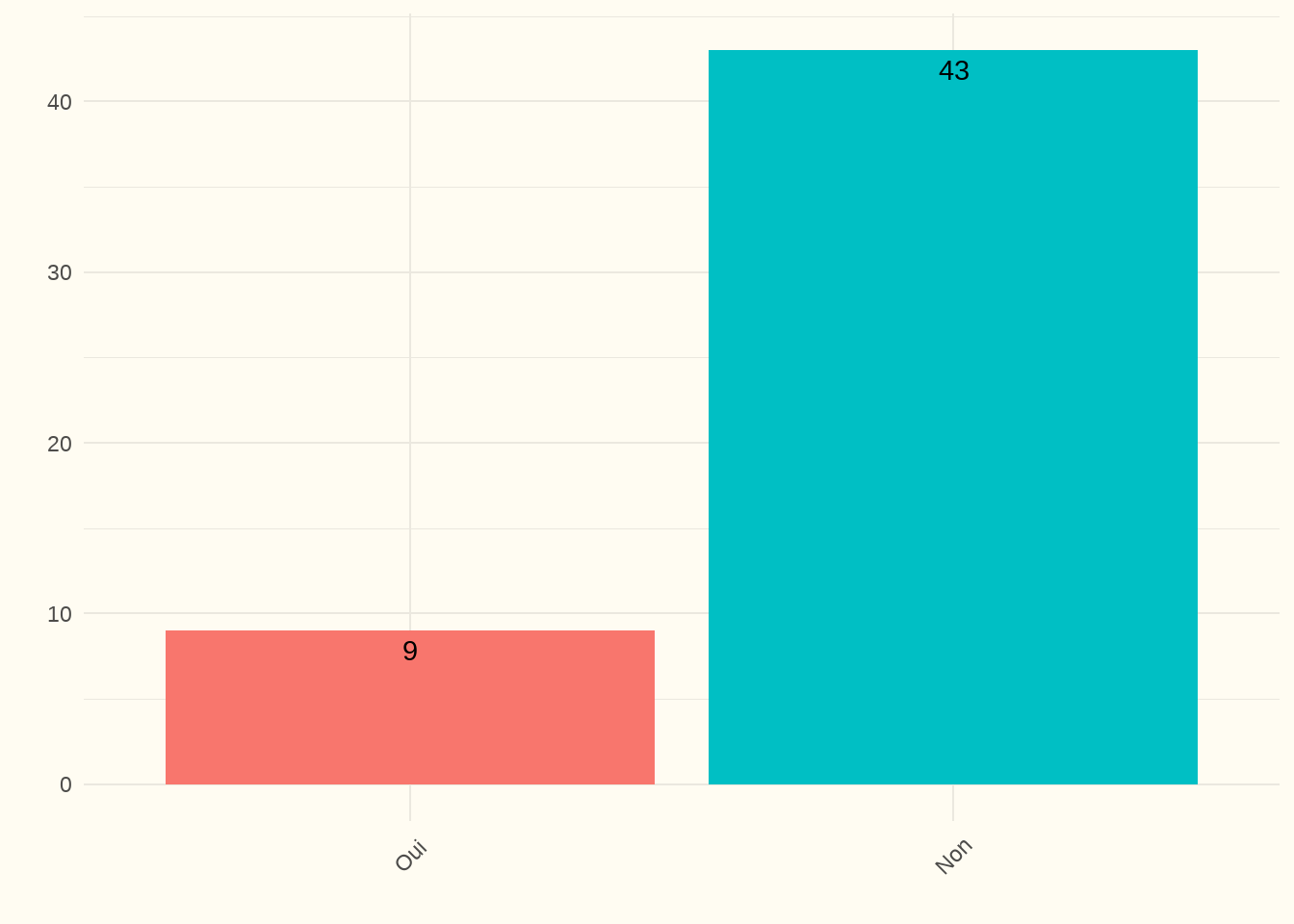 Constatation : 82 % des centres ont déclaré ne pas utiliser d’outil pour estimer le pronostic. Le taux de réponse a été de 100 %. Sur les 9 centres qui l’ont estimé, tous ont utilisé le score pronostique Rein.