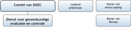 De Dienst voor geneeskundige evaluatie en controle (DGEC) heeft de volgende beheersorganen: het Comité DGEC, de leidend ambtenaar en de administratieve rechtscolleges.