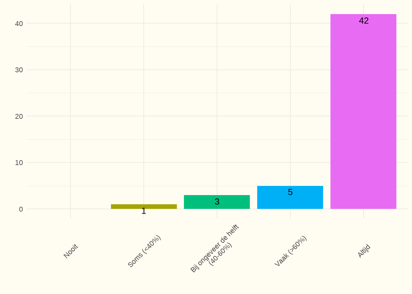 Deze vaccinatiegraad lag lager. Dertien centra meldden ≥ 90 % vaccinatiegraad en twee centra meldden een vaccinatiegraad van 0%. De range lag tussen de: 0-100%. Zes centra beantwoordden deze vraag niet.
